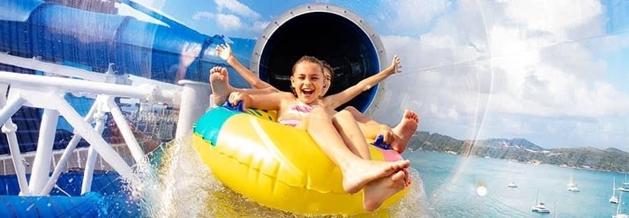 Towering waterslides. Multiple swimming pools. Tubing and splash parks. Soak it all in. Take the plunge on some of the fastest drop slides at sea. Splash the day away in the interactive Kids' Aqua Park.